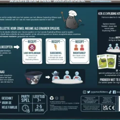 Nederlandstalige editie van het grappige spel Throw Throw Burrito – van de makers van Exploding Kittens – dat een combinatie is van een kaartspel en trefbal. Het spel is geschikt is voor de hele familie en draait om kaarten verzamelen, punten verdienen en speelgoedburrito’s naar elkaar gooien…