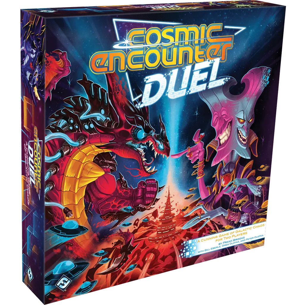 Cosmic Encounter Duel is a competitive standalone two-player game in the Cosmic Encounter universe in which you and your closest frenemy race to be the first to control five planets. Each of twenty-seven alien species comes equipped with its own unique abilities that play with the game mechanisms in some way, offering you an edge in the fight, e.g., the Cheater, who can reserve an additional tactic that they can put toward any fight in the game — as long as their opponent doesn’t call out how they’re trying to “cheat”. How your game of Cosmic Encounter Duel plays out will inevitably be affected by which powers each dueling species has and how they play off of one another.