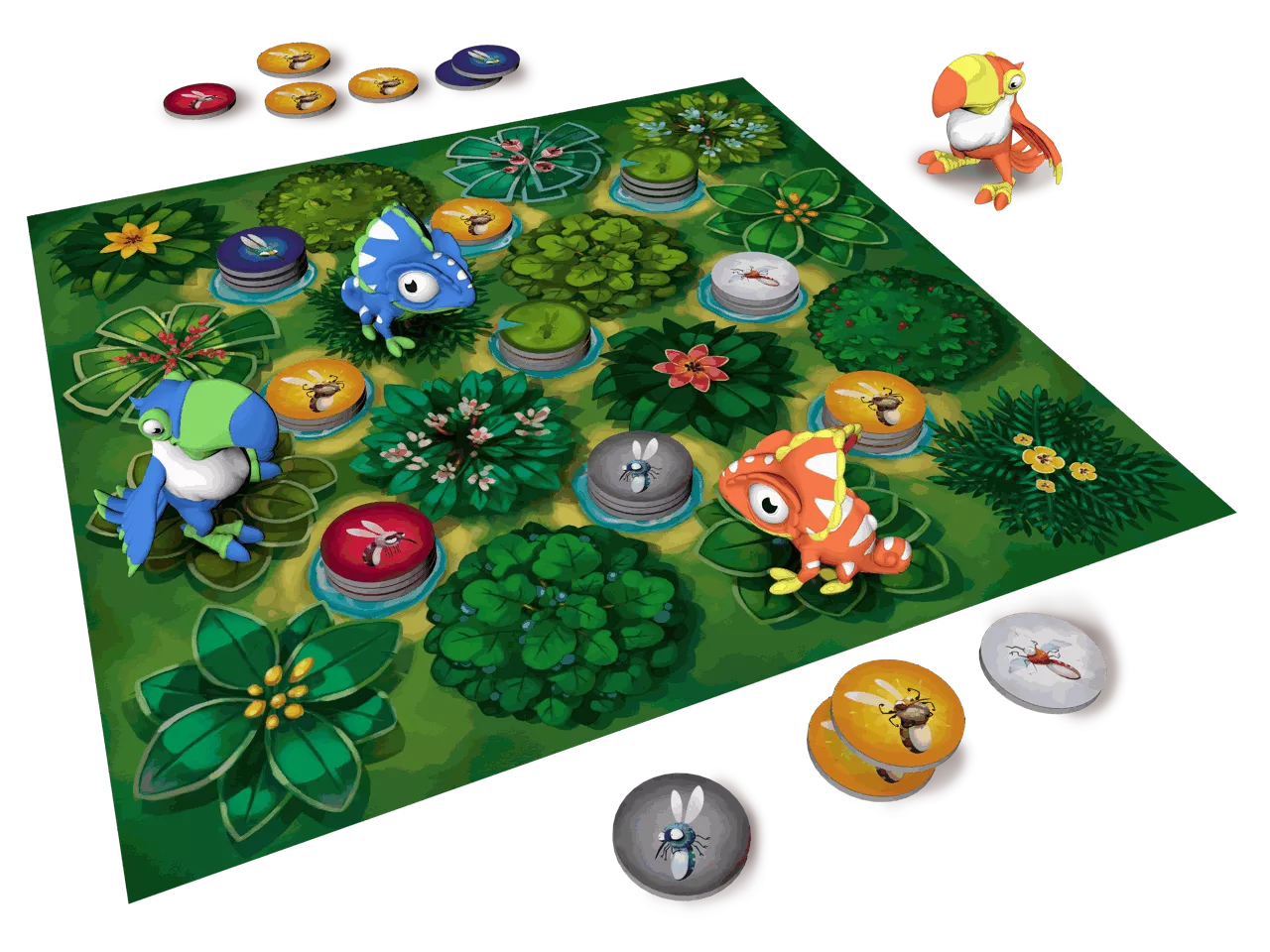 In de jungle, de vreselijke jungle, twee ploegen, ieder bestaande uit een kameleon en een toekan, zijn op zoek naar voedsel. Ze hebben het allemaal gemunt op de muskieten die men in de nabijheid van het water terugvindt. De goudgekleurde zijn bijzonder in smaak.