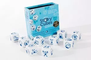 Set met 9 dobbelstenen, zodat er 54 werkwoord-afbeeldingen te gooien zijn. Probeer een leuk verhaal te maken van de gegooide afbeeldingen. Leuk en leerzaam!