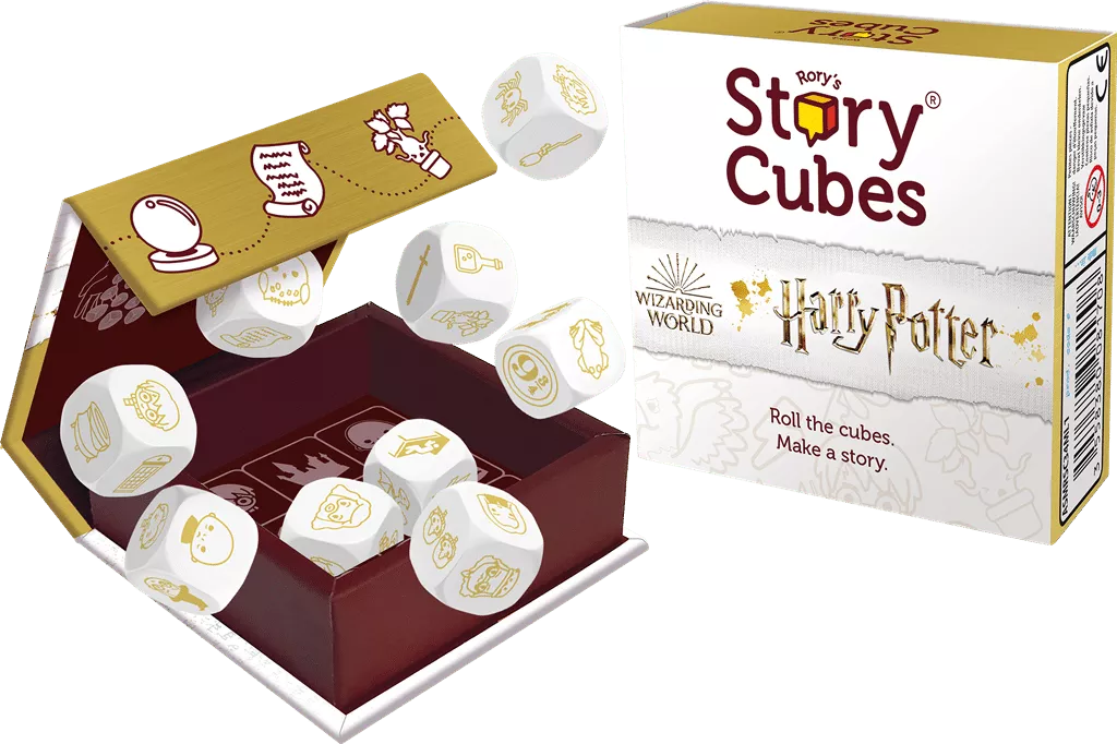 Rol de dobbelstenen van Rory’s Story Cubes en gebruik de negen zichtbare afbeeldingen om een verhaal mee te verzinnen. Dankzij de onbeperkte mogelijkheden biedt Rory’s Story Cubes uren fantasierijke pret aan alle leeftijden. Er is één regel: er zijn geen foute antwoorden. Rory’s Story Cubes zijn verkrijgbaar verschillende versies, dit is de set met Harry Potter afbeeldingen.